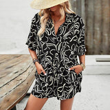 2Pcs Casual Gedrukt Pakken Shirt Met Korte Mouwen En Koordje