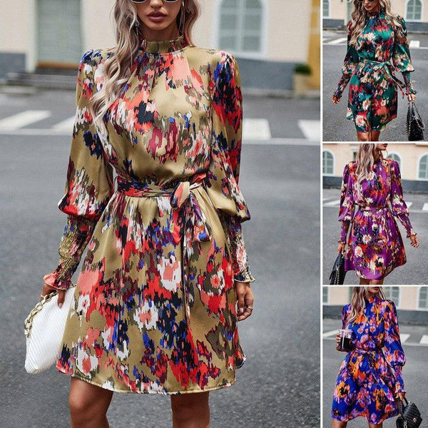 Gedrukte Jurk Herfst Elegante Jurk Met Lange Mouwen