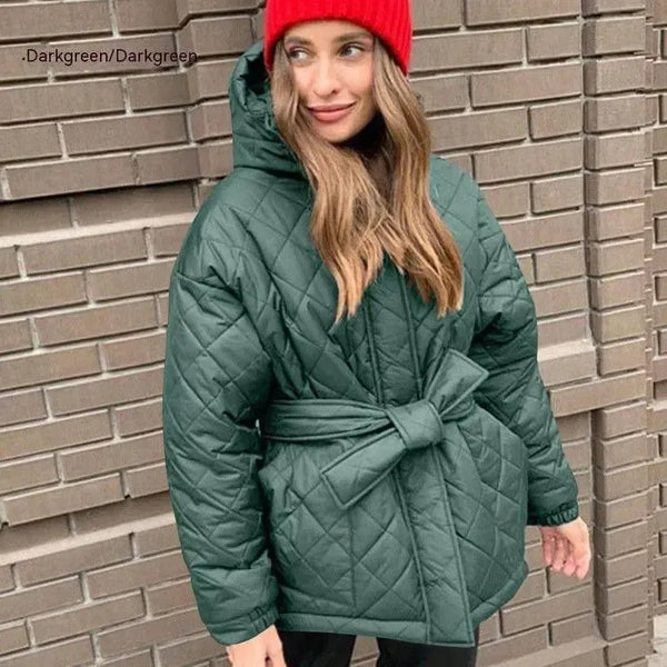 Katoenen jas met capuchon Slim-fit Lace Up Lapel Lange Mouwen
