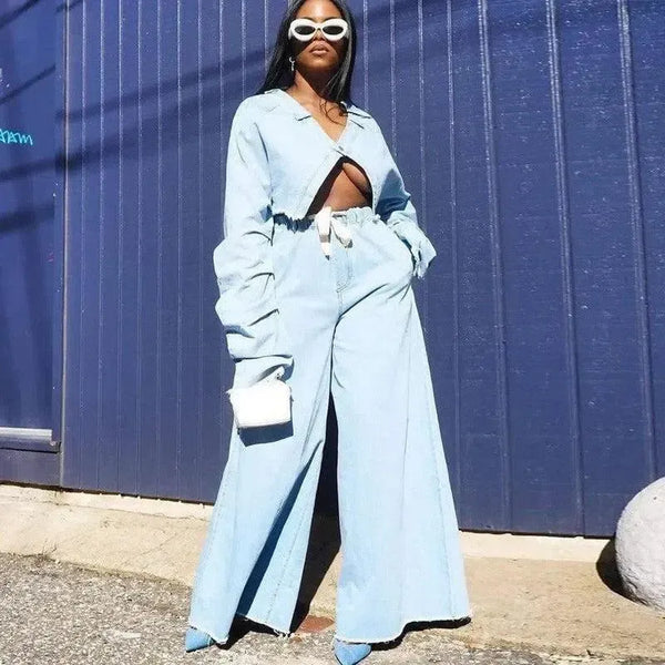 Productomschrijving: Casual Los Denim Kostuum Tweedelig Vrouwenkleding