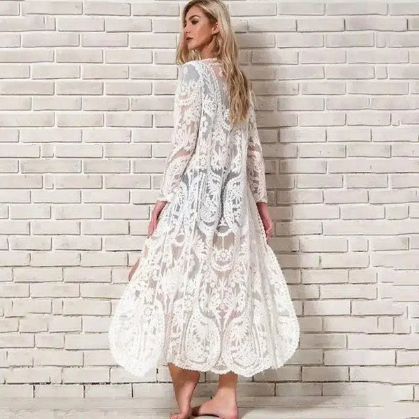 Kanten midi-jurk met lange mouwen voor vrouwen