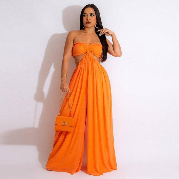 Chiffon borst-omwikkeld blote rug wijd been jumpsuit Europese