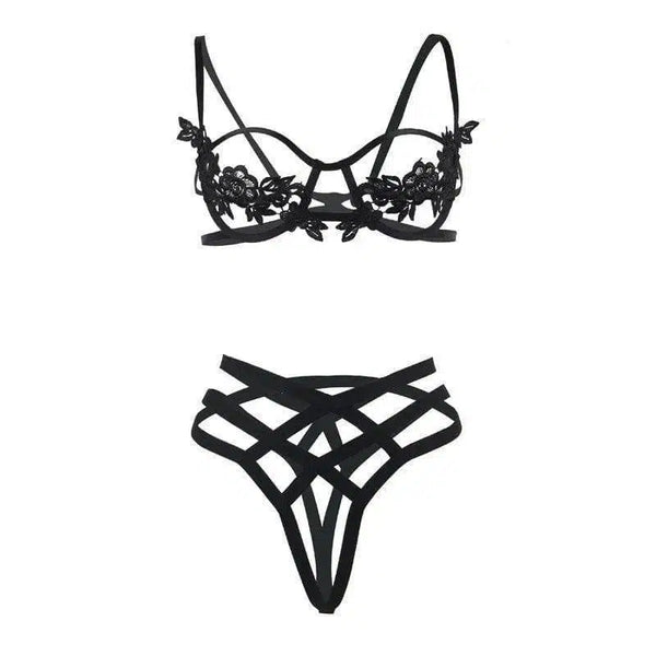 - Inclusief: Bh, jarretelgordel en bijpassende string