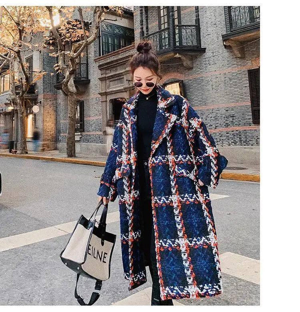Contrasterende Plaid Temperament Kostuum Kraag Los Recht