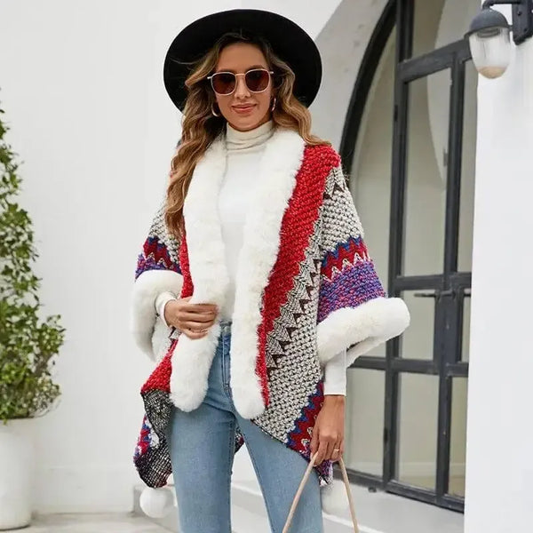 Dames Bontkraag Inverness Gestreepte Etnische Stijl