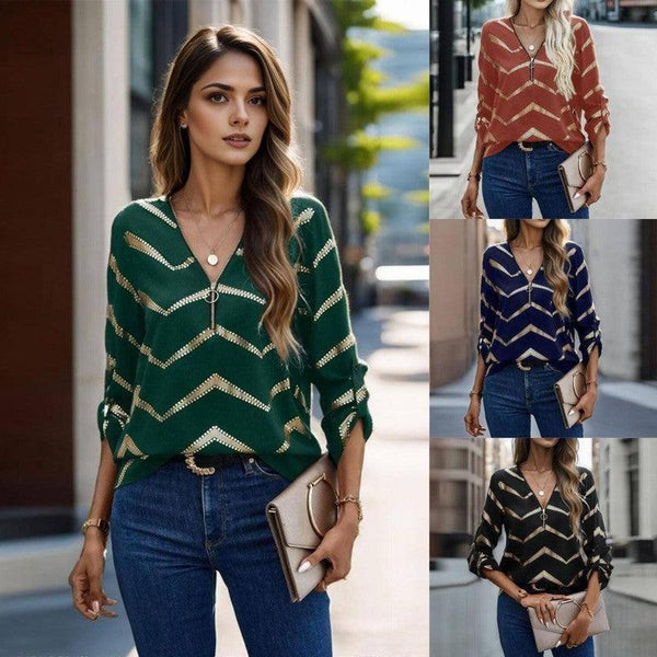 Casual gestreept dameshemd met lange mouwen en V-hals