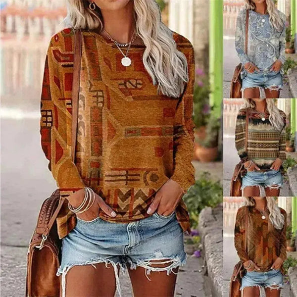 Dames Bedrukte Pullover Ronde Hals Top met lange mouwen