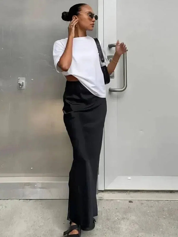 Vrouwen Zwart Elegant Satijn Modieus Slanke Rokken Vier Seizoenen