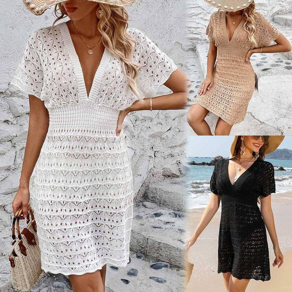 Diepe V-hals Strandjurk Golfpatroon Hollow Out
