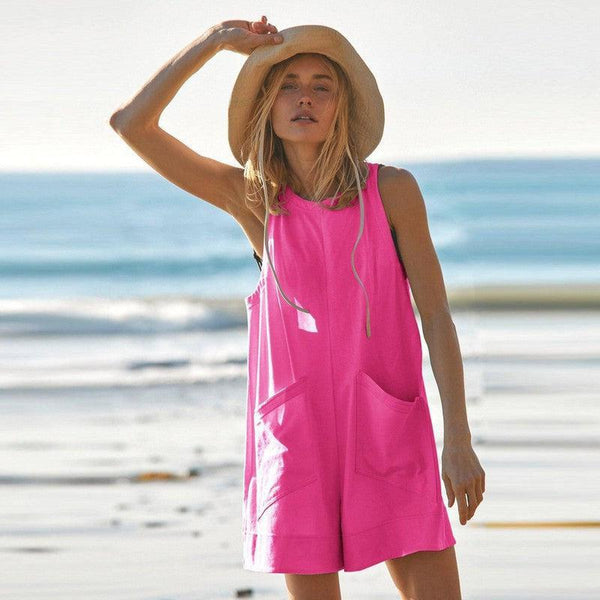 Effen kleur Losvallende jumpsuit met zakken Modieus Zomer Roze / L