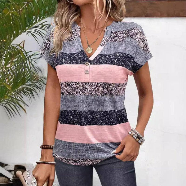 Europese en Amerikaanse zomer gestreepte V-hals met korte mouwen 3D
