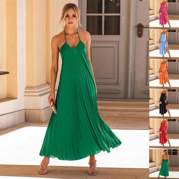 Mode A-lijn geplooide jarretel lange jurk zomer casual