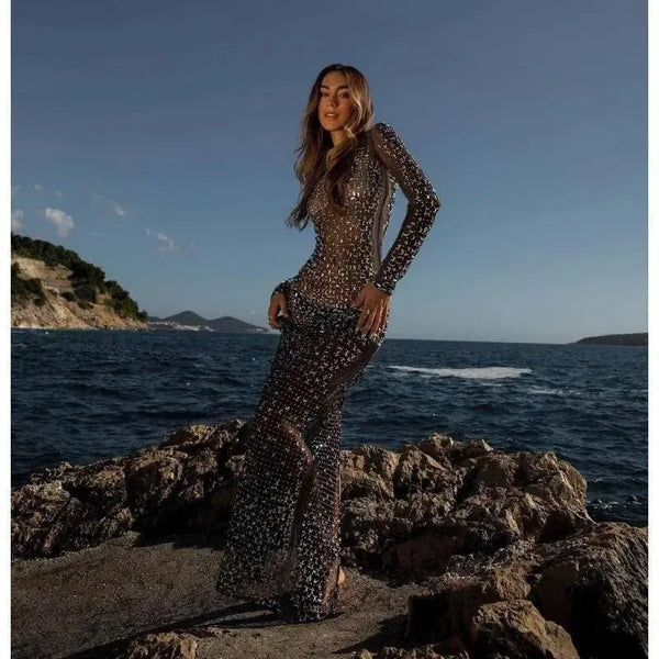 Productbeschrijving: Sparkly maxi-jurk met lange mouwen