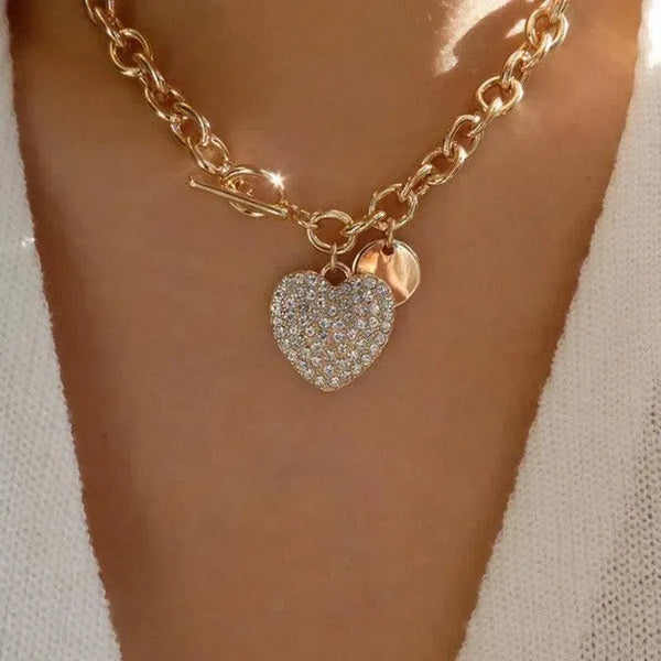 Productbeschrijving: Ronde hartvorm met diamanten halsketting
