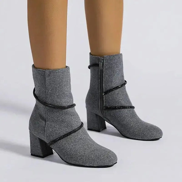 Chunky Mid Heel Laarzen met strass ontwerp ketting schoenen voor