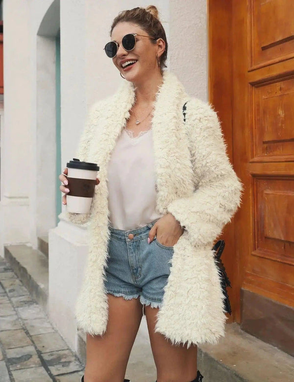 Halflange jas van imitatiebont met lange mouwen