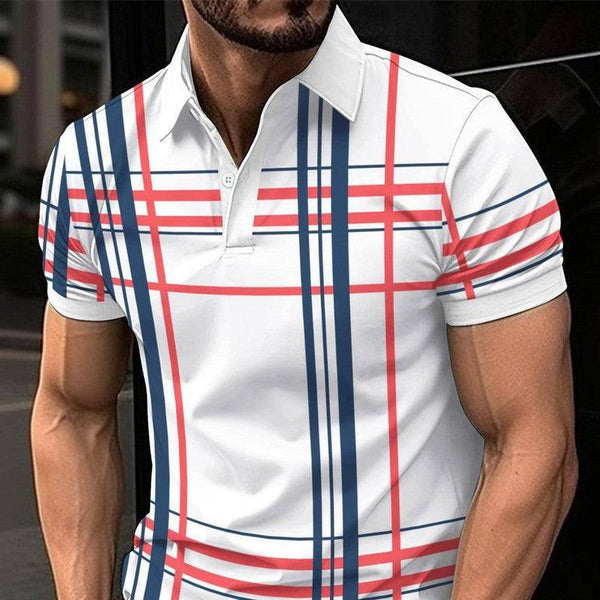 Herenshirt met bedrukte reversknop en korte mouwen, marineblauw / 3XL