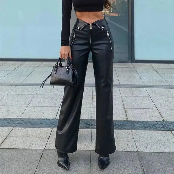 Hoge Taille Recht Los Wijd Been Casual Broek Leer