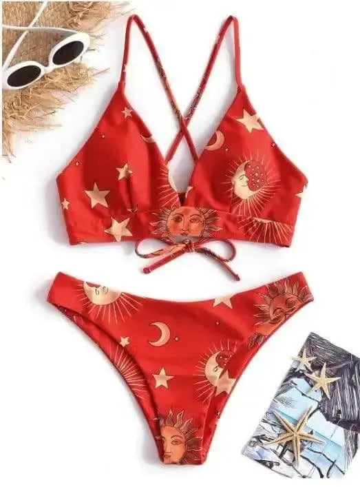 Zon Maan Ster Opdruk Hoog Taille Split Bikini