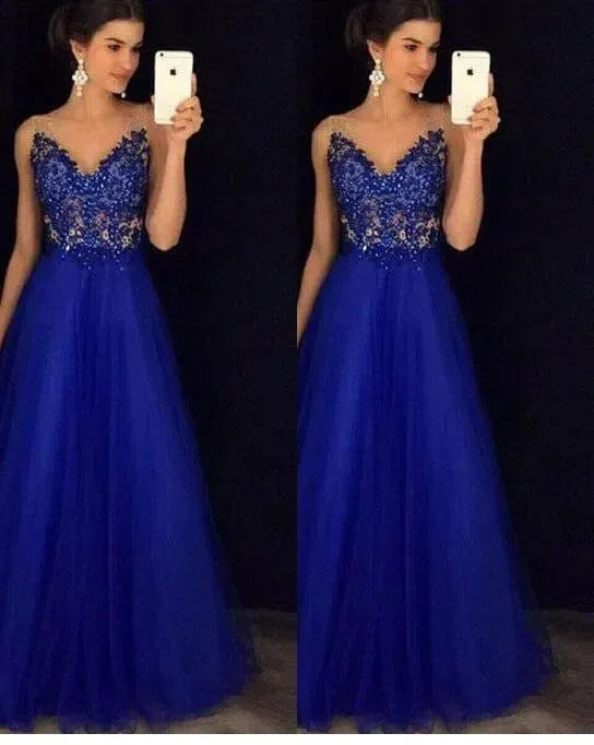 Jurk Rugloos Kralen Bal Elegant Lang Jurk Blauw Chiffon