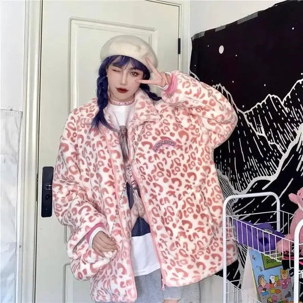 Koreaanse versie van roze lamswol losse gewatteerde winterjas