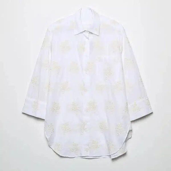Geborduurd casual overhemd met knoopsluiting voor heren