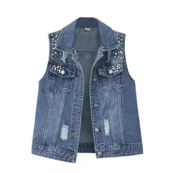 - Klassiek met een twist: Dit denim vest heeft unieke distressed details voor een vleugje stoere charme.