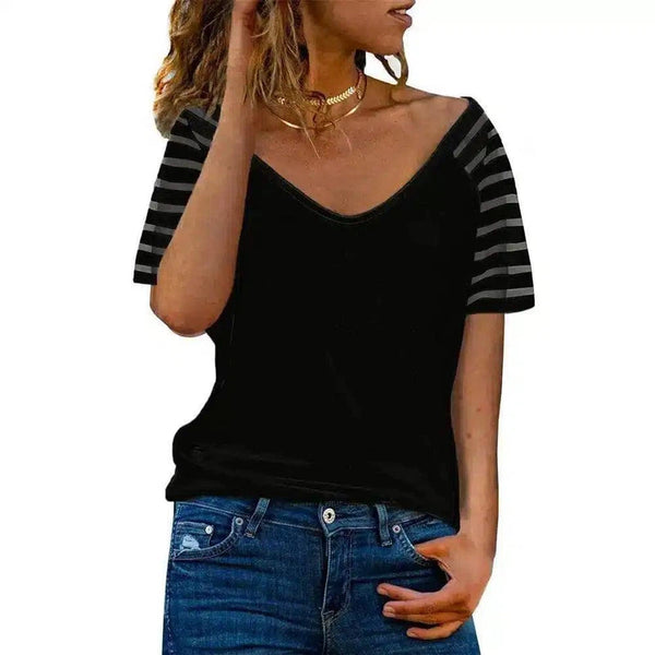 Dames-T-shirt met gestreepte mouwen en V-hals