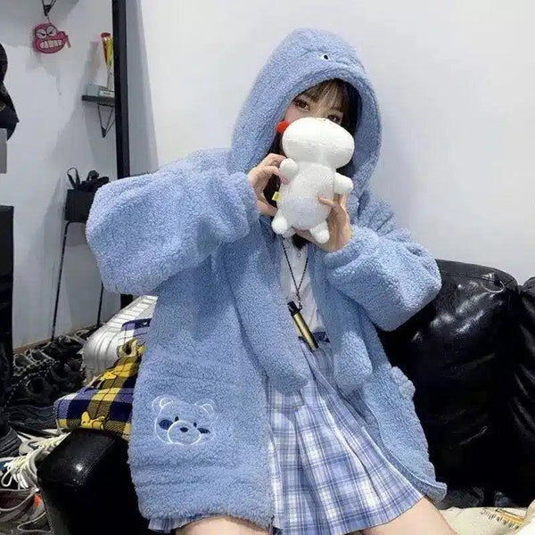 Beer Lamswol Winterjas Vrouwen Pluche Losse Oren