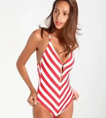 Bikini eendelig badpak gestreept schouderbandje