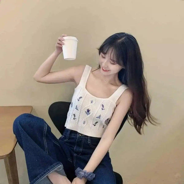 Gebreide bloemetjestop mouwloos vrijetijdskleding
