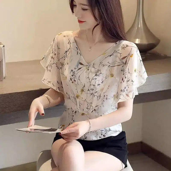 Gebloemde chiffon blouse met fladdermouwen