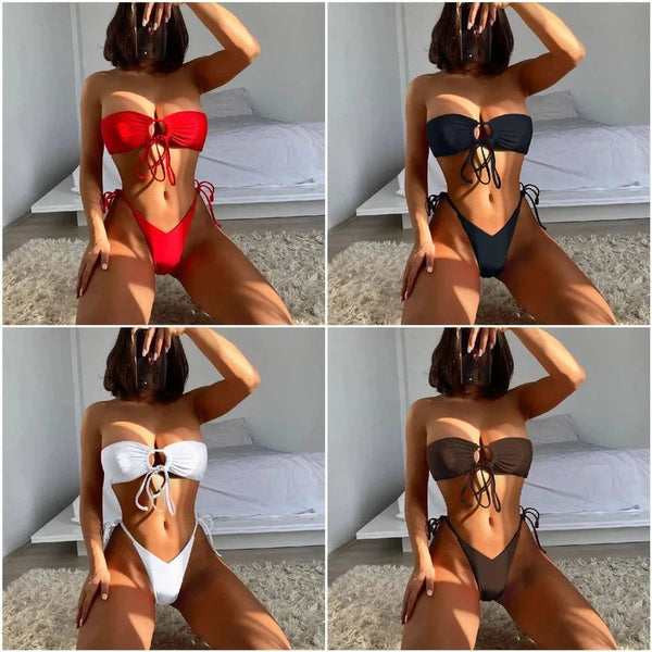 Dames Split Zwempak Verstelbare Geknoopte Bikini