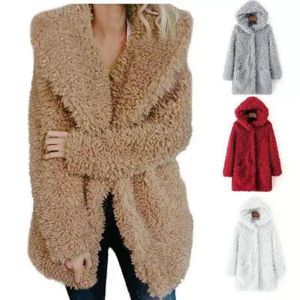 Fuzzy dames winterjas met capuchon