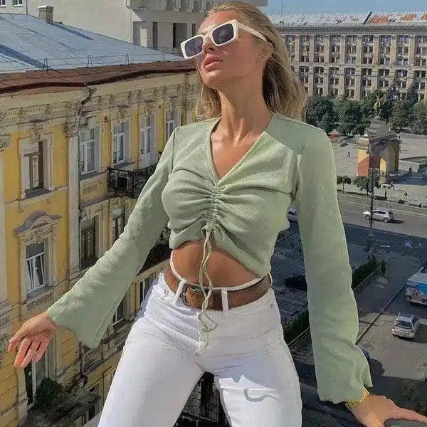 - Veelzijdige saliegroene tint: Gekleed in een trendy saliegroen, is deze top een veelzijdige aanvulling op je garderobe, gemakkelijk te combineren met een verscheidenheid aan bottoms.