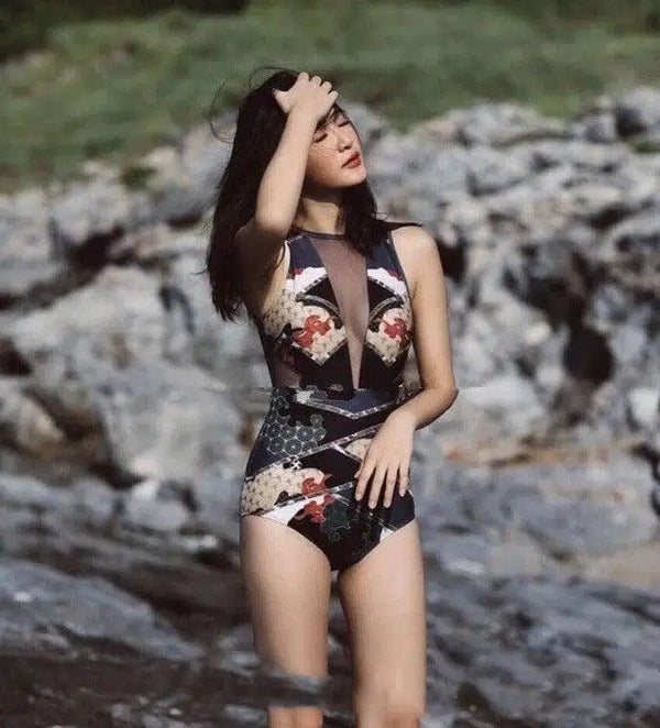 - Design: Elegant eendelig badpak geïnspireerd door Zuidoost-Aziatische culturele motieven.