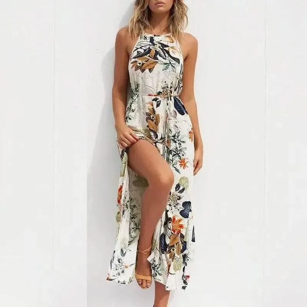 Europese en Amerikaanse slingerkatoenen bedrukte lange strandjurk