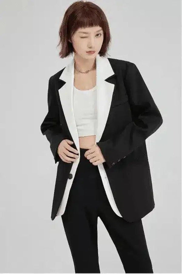 - Hals- of schouderstijl: ingekeepte revers met contrasterende details
