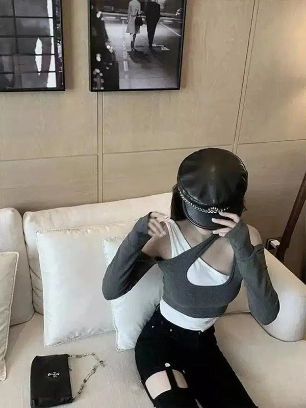 Zwart met grijze sportbeha - Trendy Activewear Top
