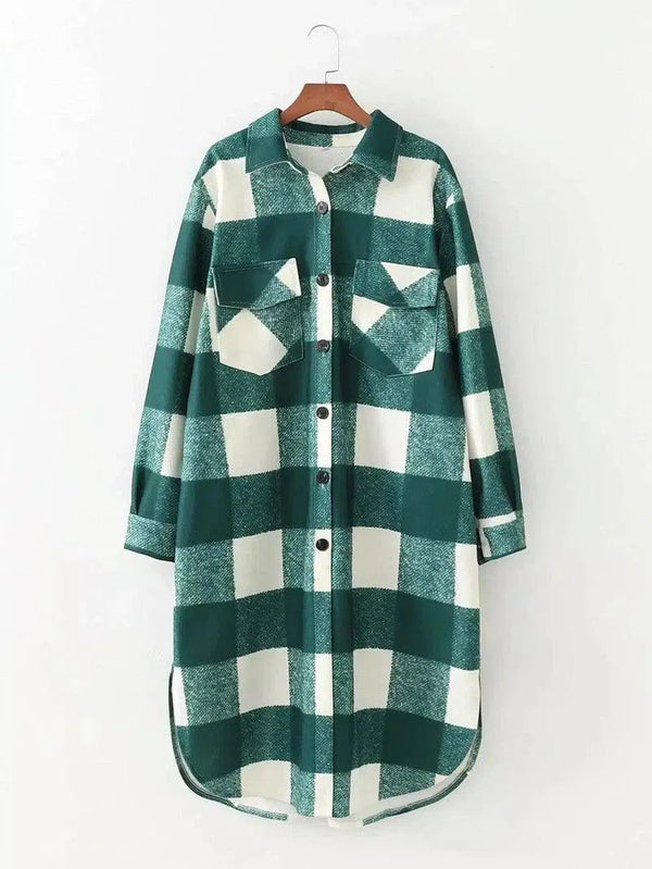 - Design Details: Vet Groen en Wit Geruit Patroon, Twee Borstzakken met Kleppen, Knoopsluiting Aan De Voorkant