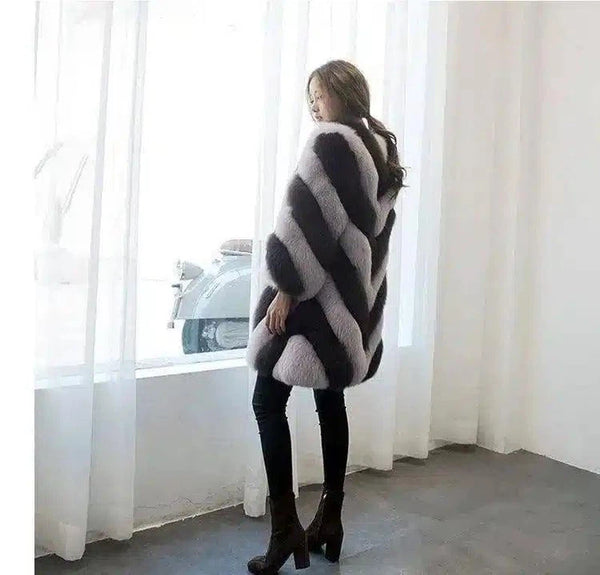 Gestreepte mantel met lange mouwen van imitatiebont