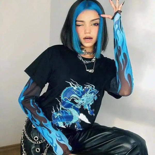- Type kledingstuk: Grafisch T-shirt met gelaagde mesh mouwen