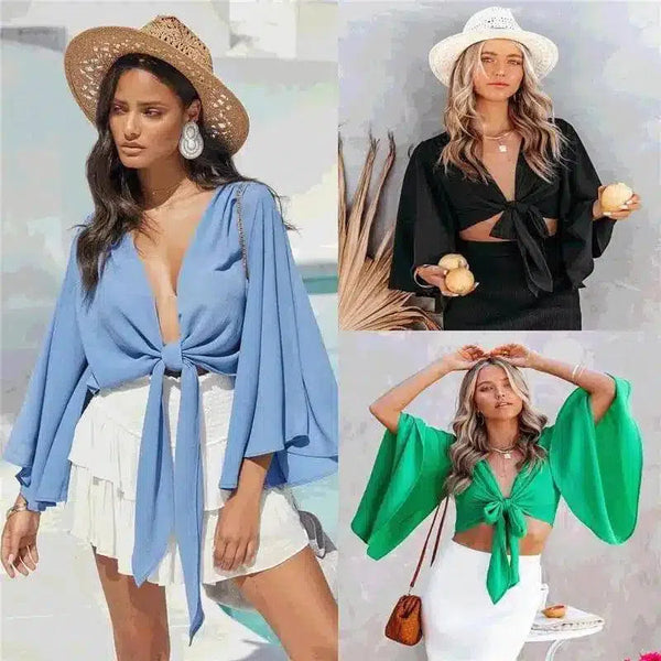 - Type kledingstuk: Shoptops met stropdas aan de voorkant voor dames .