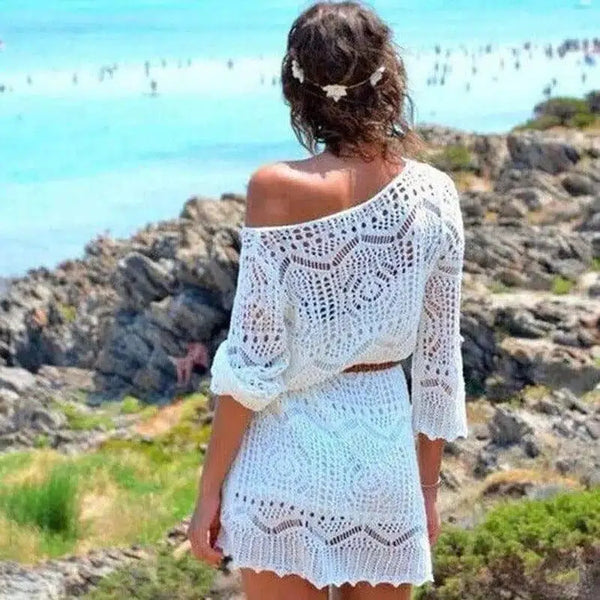 Gebreide uitgeholde strandjurk