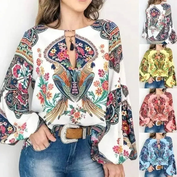 Gepersonaliseerde print Ronde hals Lantaarn mouw shirt