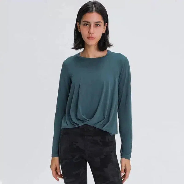 Gedrapeerde damesblouse met lange mouwen voor op het werk