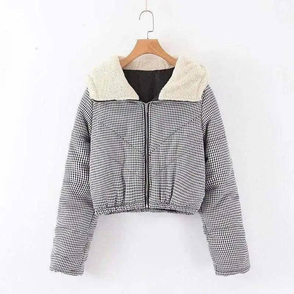 Grote revers korte geruite jas jas met capuchon katoenen jas