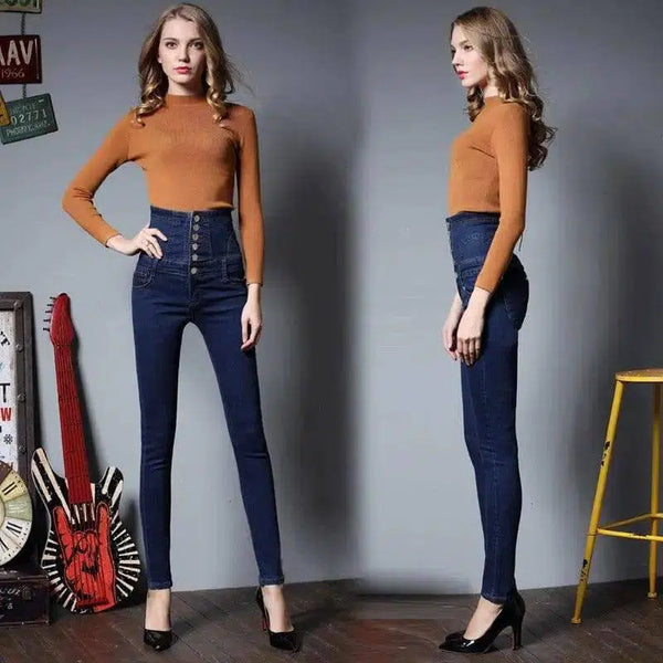 high waisted jeans vrouwelijke dunne elastische voeten koker broek