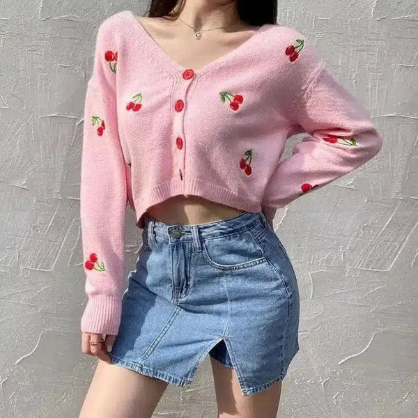 Geborduurd kersen-crop vest met knoopsluiting voor