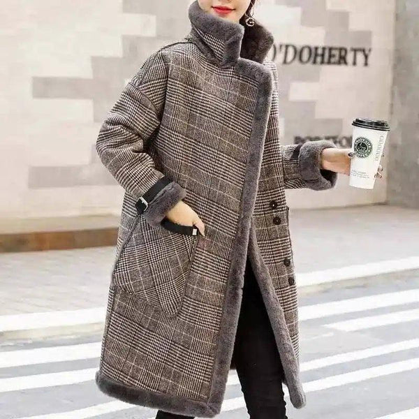 Koreaans temperament plus fluwelen dikke halflange wollen jas